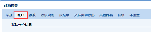 2)在邮箱设置界面中,点击“帐户”菜单