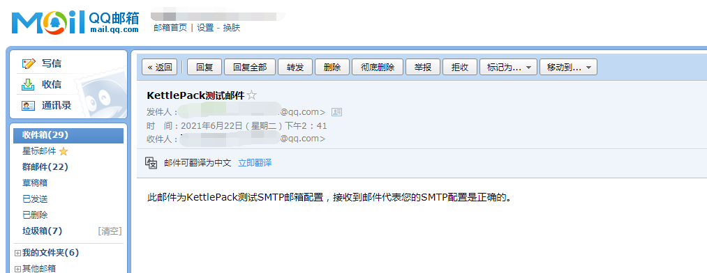 8)若测试通过,当前填写的邮箱将收到测试邮件