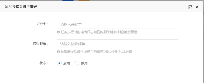 关键字:预警关键字,当系统在运行日志中监测到该关键字后,就会触发预警。