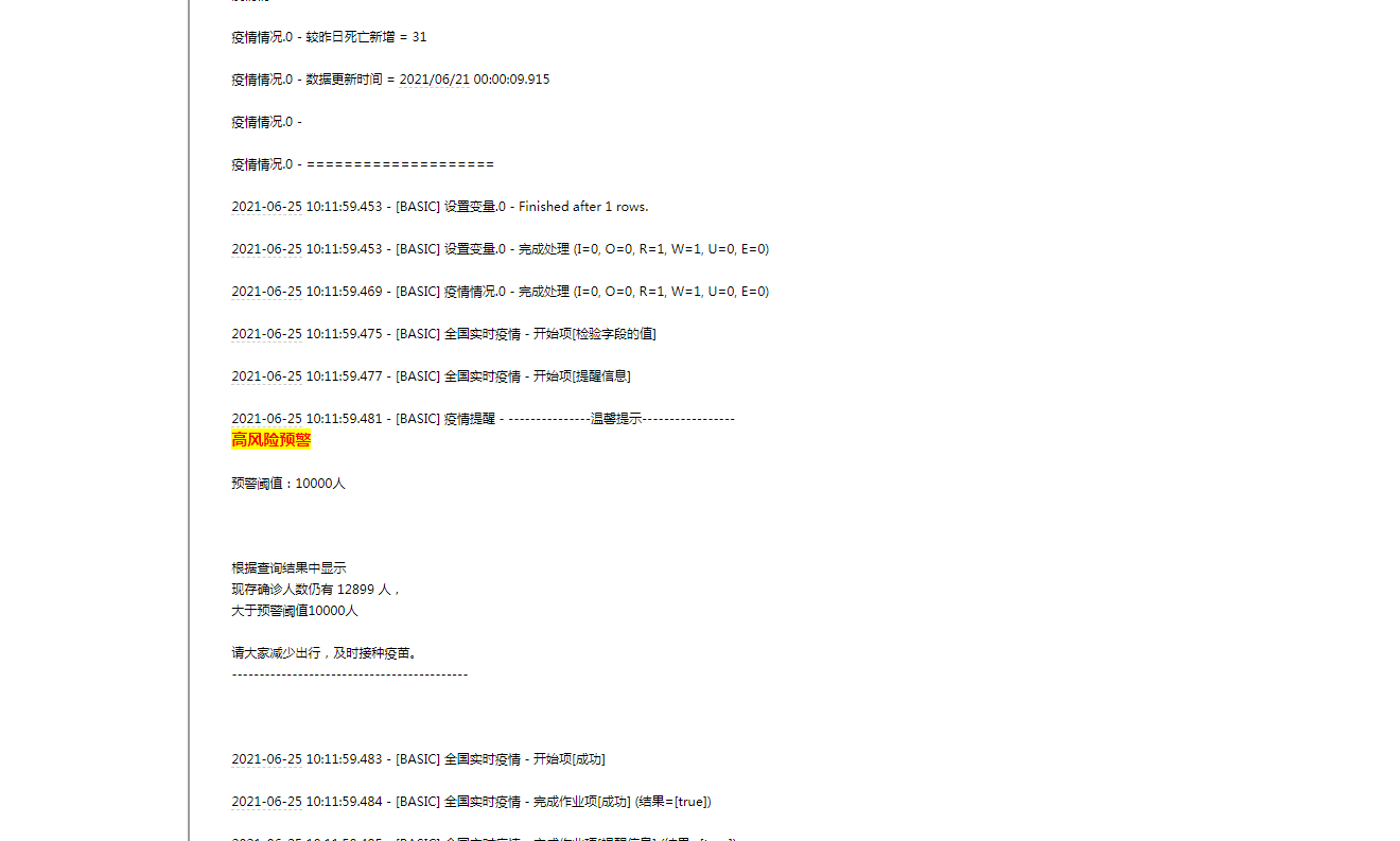 如果当前确诊人数小于我配置的预警阈值,则产生如下日志: