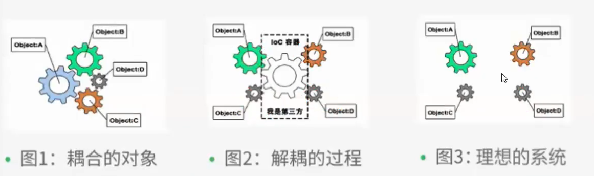 控制反转IoC(Inversion of Control),是一种设计思想,DI(依赖注入)是实现IoC的一种方法,也有人认为DI只是IoC的另一种说法。没有IoC的程序中 , 我们使用面向对象编程 , 对象的创建与对象间的依赖关系完全硬编码在程序中,对象的创建由程序自己控制,控制反转后将对象的创建转移给第三方,个人认为所谓控制反转就是:获得依赖对象的方式反转了。