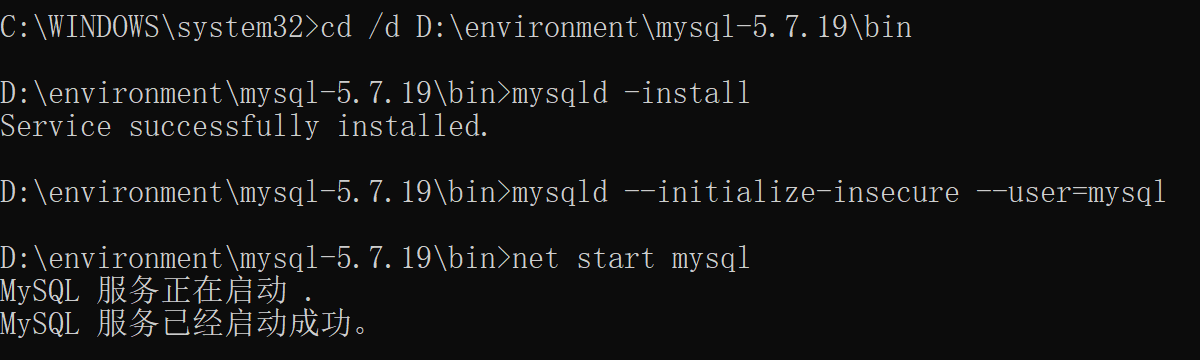 2、把这个包放在自己的安装目录,如D:\environment\mysql-5.7.19