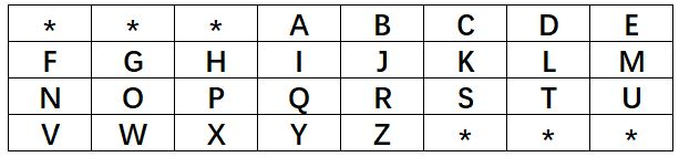 在自动售票机屏幕上,有一个 \(4 \times 8\)的键盘,如下图所示。