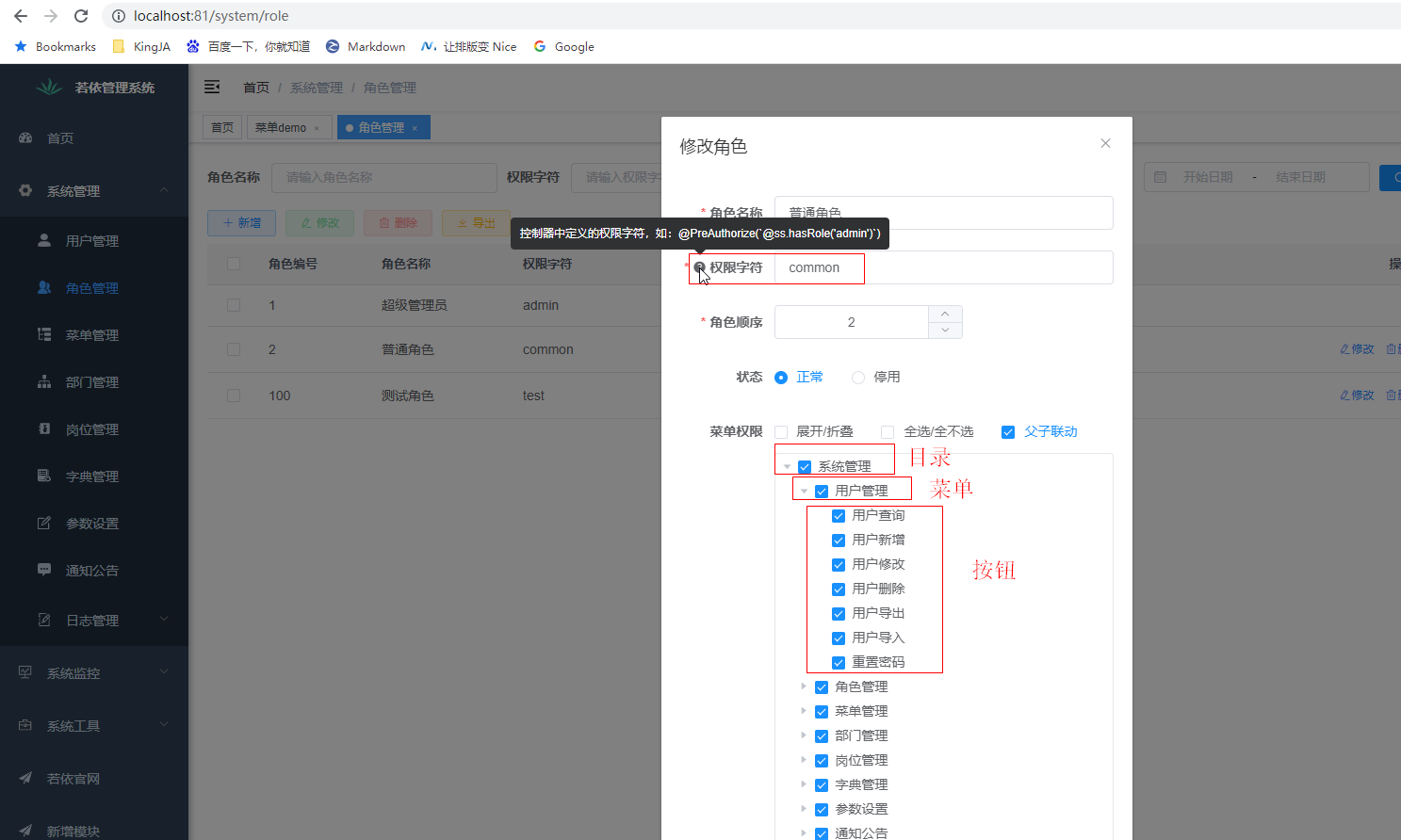 角色管理中,关于角色菜单的动态渲染,我们这里说明一下: