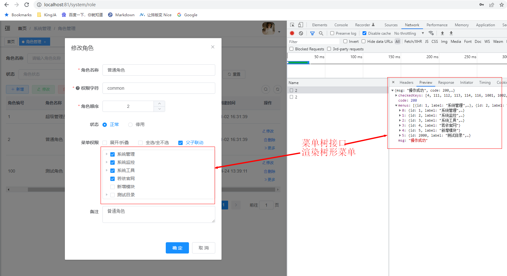 1个是:http://localhost:81/dev-api/system/menu/roleMenuTreeselect/2获取菜单树