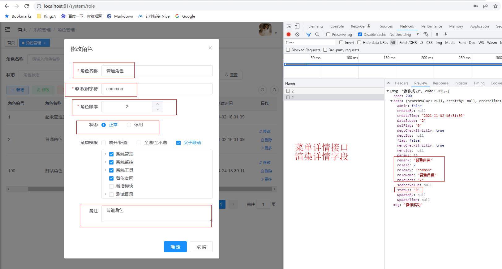 1个是:http://localhost:81/dev-api/system/role/2获取角色详情