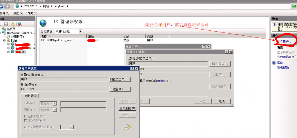 再点击IIS管理权限,将你在上个步骤建的账号赋给这个网站,