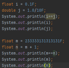 ——不能使用浮点类型进行比较,因为浮点数计算存在舍入处理,不是完全精确的。