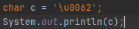 同理,通过转义符"\u",以Unicode编码形式输出0062(即16进制下的98),可以打印出"b"字符: