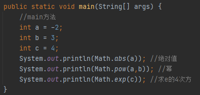 另外在计算幂、求绝对值、求对数等数学操作时,Java没有提供对应的符号,我们可以借用Math工具类来实现,结果会以double类型显示。