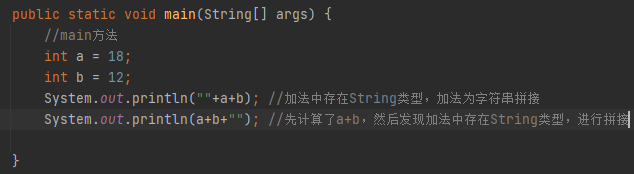 备注:如果运算符存在加法,而加法一方为String类型,那么此次相加为字符串拼接,如下图所示: