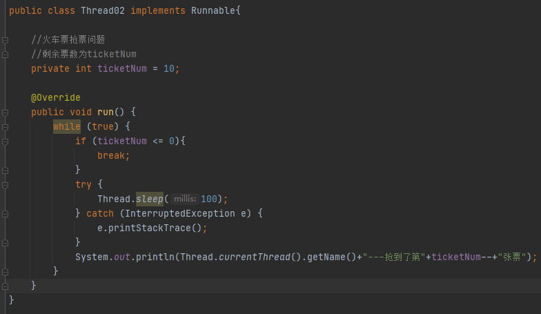 2)sleep方法可能存在异常InterruptedException,需要通过try-catch方法处理;