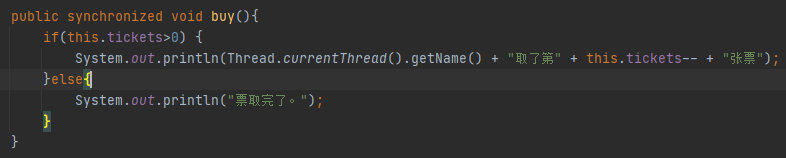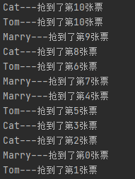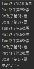 从结果看,存在重复抢票的情况,甚至还可能会抢到第0张票,这就是并发过程中的数据紊乱问题,可以通过线程同步解决。