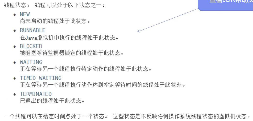 1)new:Thread t = new Thread(); 线程对象一旦创建就进入到了new状态;