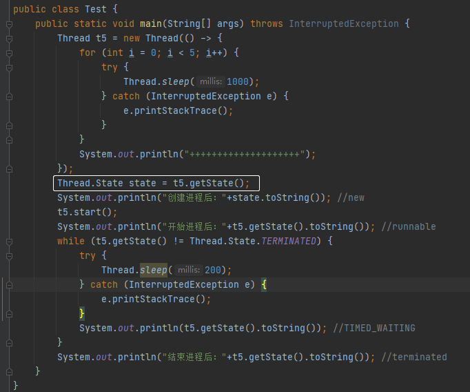 通过Thread.getState()方法获取线程当前状态,实例如下: