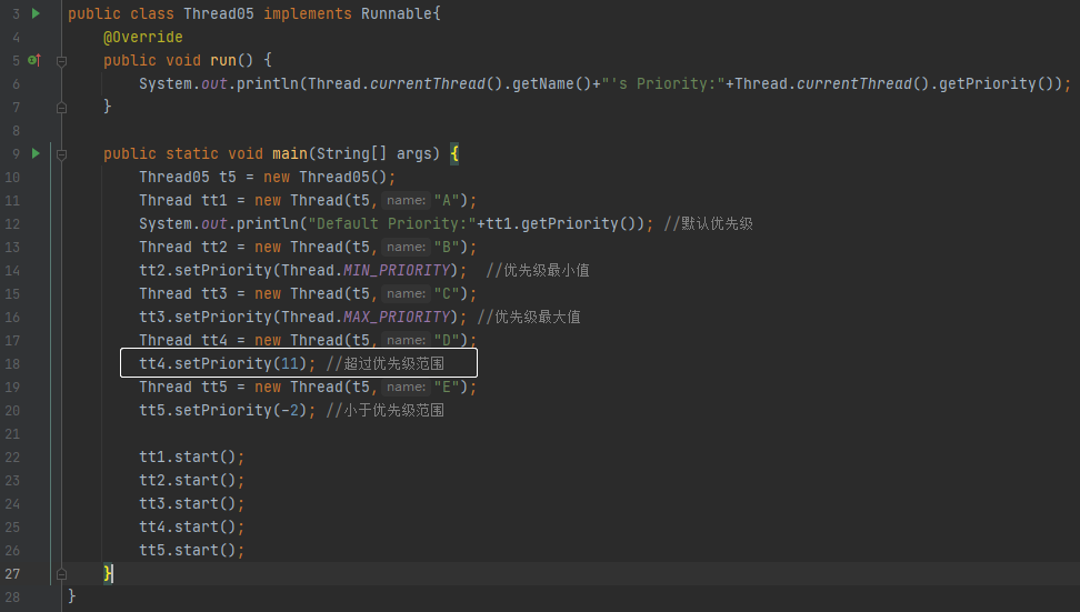 ——Thread.MIN_PRIORITY、Thread.MAX_PRIORITY、Thread.NORM_PRIORITY