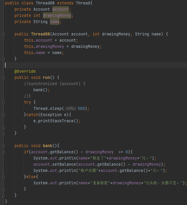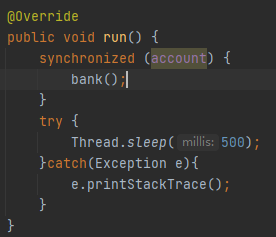 此时应该用synchronized同步块方法,将同步监视器设置为account对象: