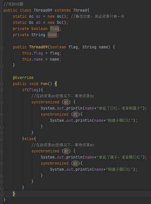 当某一个同步块同时拥有“两个以上对象的锁”时,就可能发生死锁的问题。
