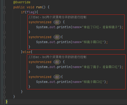要解决这个问题,我们只需要控制一个同步块内不要放两个以上对象即可。