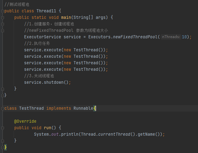 void execute(Runnable command):执行任务/命令,没有返回值,一般用来执行Runnable