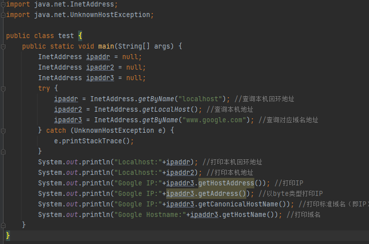 1)首先实例化inetAddress对象,通过域名获取对应服务器的IP,同时用户需要了解该服务器的通信端口;