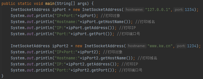 2)端口:InetSocketAddress类主要用于封装端口,有对应的构造器,需要声明实例化后才可调用。