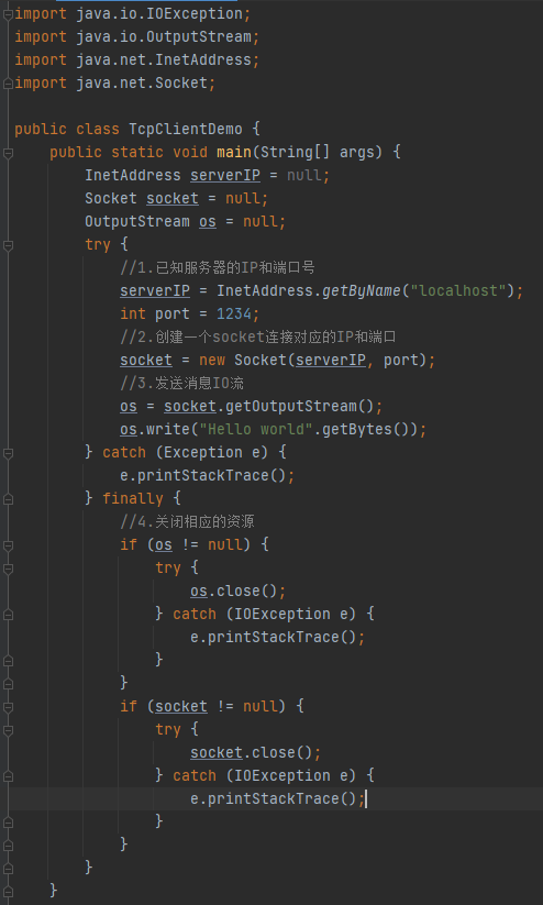 5)如果不需要继续监听消息和使用socket,则需要依次调用close方法将这些对象关闭,释放资源。