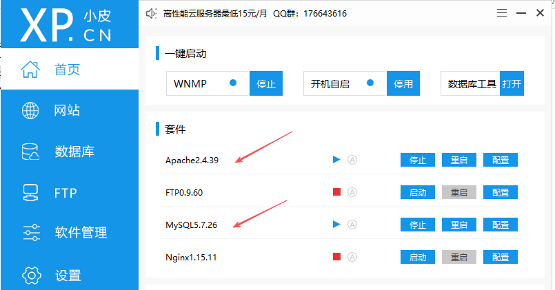 小皮面板启动 apache 和 mysql,然后进行访问