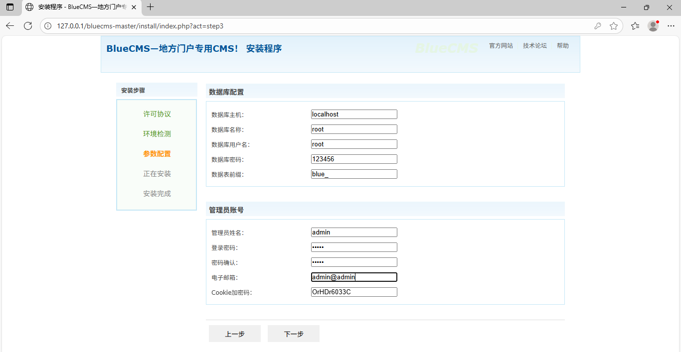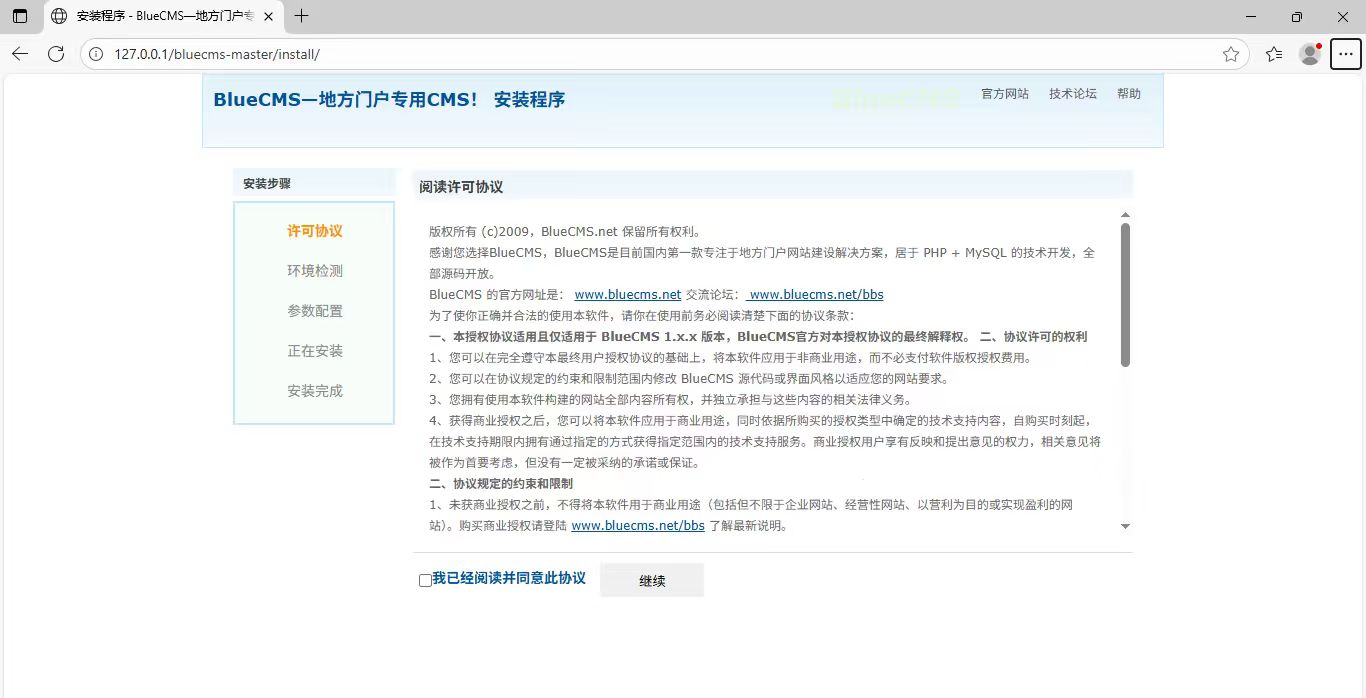 http://127.0.0.1/bluecms-master/install/