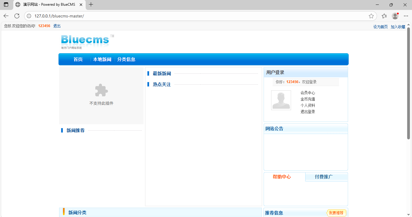 http://127.0.0.1/bluecms-master/index.php