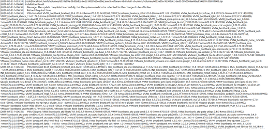 esxcli software vib install -d=/vmfs/volumes/6033a89a-9b302dcc-6ed2-0050569ee88e/ESXi670-202011002.zip