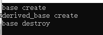 1 #include<iostream> 2 using namespace std; 3 4 struct base { 5 base() { cout << "base create" << endl; } 6 ~base(){ cout << "base destroy" << endl; } 7 }; 8 9 struct derived_base : public base { 10 derived_base() { cout << "derived_base create" << endl; } 11 ~derived_base() { cout << "derived_base destroy" << endl; } 12 }; 13 14 int main() 15 { 16 17 derived_base* db = new derived_base(); 18 delete db; 19 20 return 0; 21 }