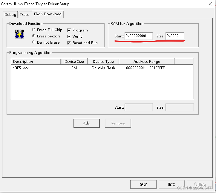 问: nRFgo Studio可以下载,但KEIL下载报错: Insufficient RAM for Flash Algorithms !
