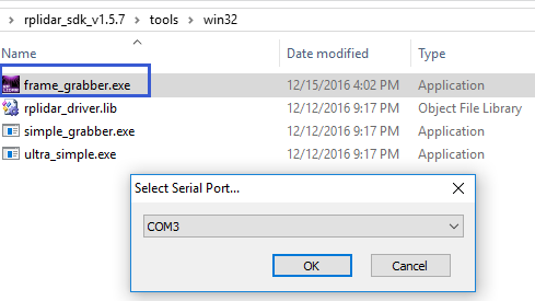 官方针对rplidar雷达,给出的SDK中提供了相应的frame_grabe可视化测试界面。具体操作流程如下: