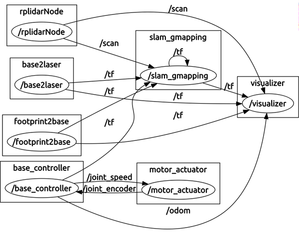 package的相应功能,如果我要在一台机器人本体上使用激光雷达需要怎么设置呢?其实在ROS里利用已有package搭建系统实现基本功能你只需要关注好topic/service和TF frame是否协调起来。TF是ROS里面主要的概念,它维护着每个数据对应坐标系之间的位姿变换关系。要搭建带rplidar的机器人ROS系统,