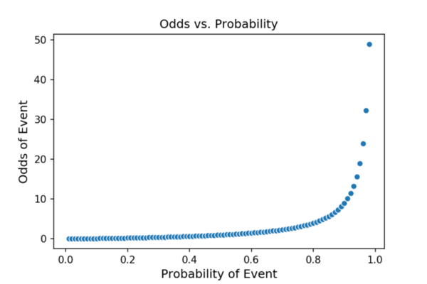 概率限制在0和1之间,这将是回归分析中的问题。如您所见,这里赔率范围是从0到无穷大。