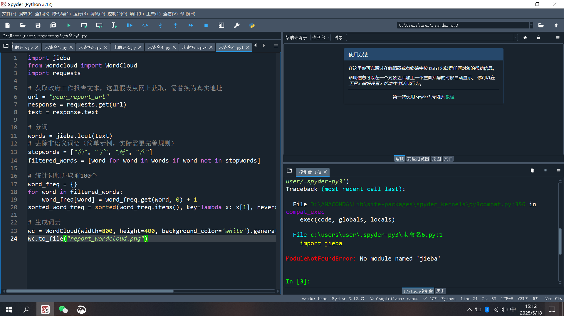 摘要: 💡解答 关于numpy、scipy、pandas、matplotlib的读书报告 基本函数用法 • numpy:介绍numpy数组的创建,如numpy.array()将列表转换为数组;数组的基本属性,像shape获取数组形状,dtype查看数据类型。阐述数组的运算,如算术运算(加、减、乘、除等)、