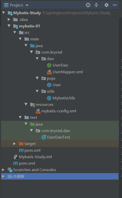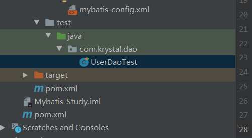 出现这个问题可能是maven自动资源过滤问题,可以查看target目录下(F:\springbootProjects\Mybatis-Study\mybatis-01\target\test-classes\com\krystal\dao)把我们的mapper.xml文件赋值到.class文件相同的目录中试试,再重新测试。(可以使用maven的clean清除target文件)
