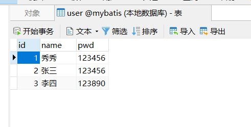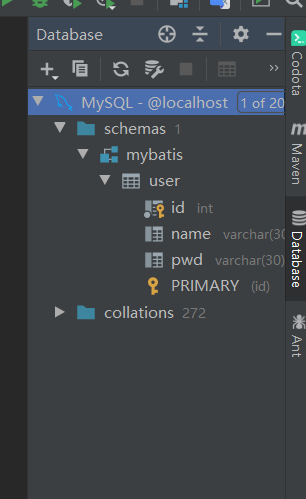 在mybatis中创建表: user
