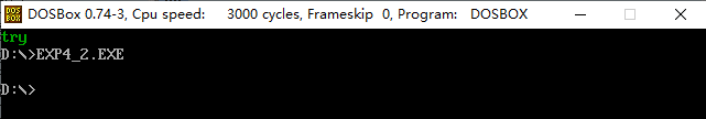将第三行改成 str db 'another try', 0 ,第12行改成 mov al, 4,结果如下: