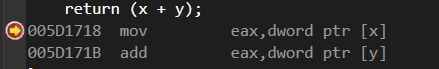 在line7、line13插入断点,查看汇编: