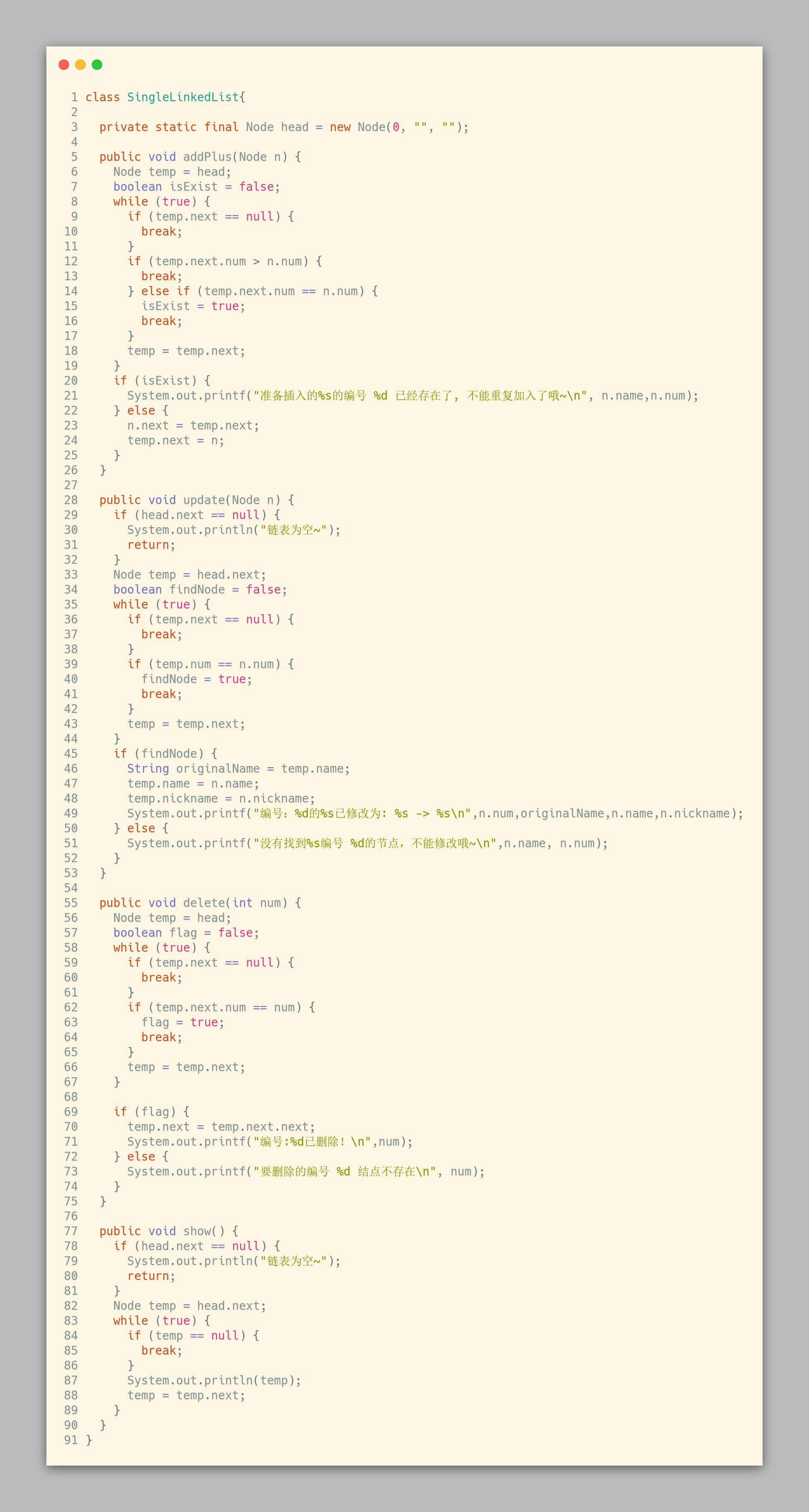 // 因为单链表,因为我们找的 temp 是位于 添加位置的前一个节点,否则插入不了