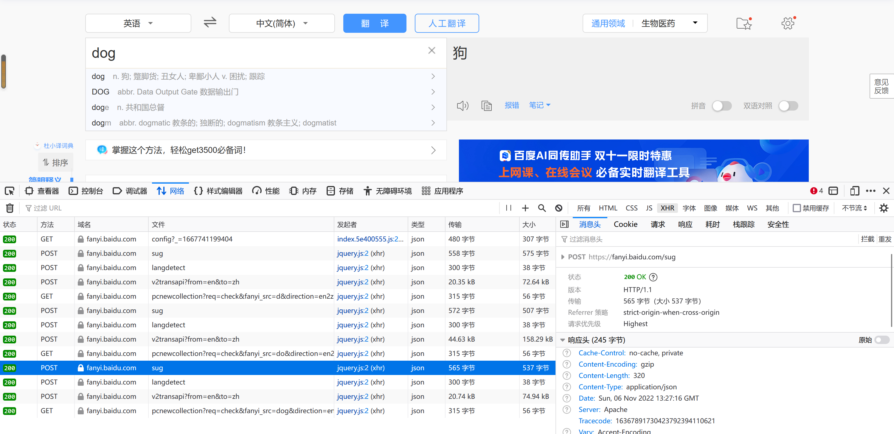 这一步出现了一些问题,和老师的不一样,直接输入没有sug包,但是一个一个字母输入可以得到sug包