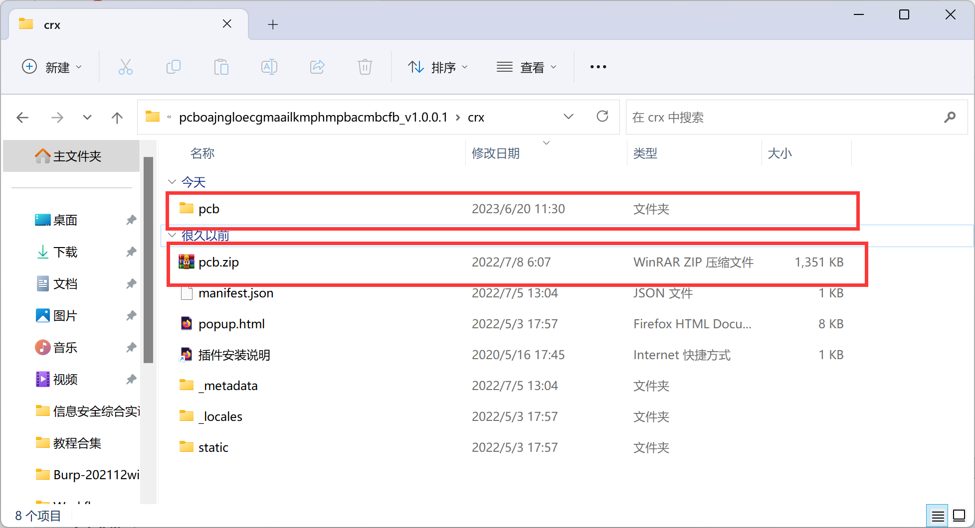 将解压后的crx文件先压缩(改名字并且后缀改为zip)再解压