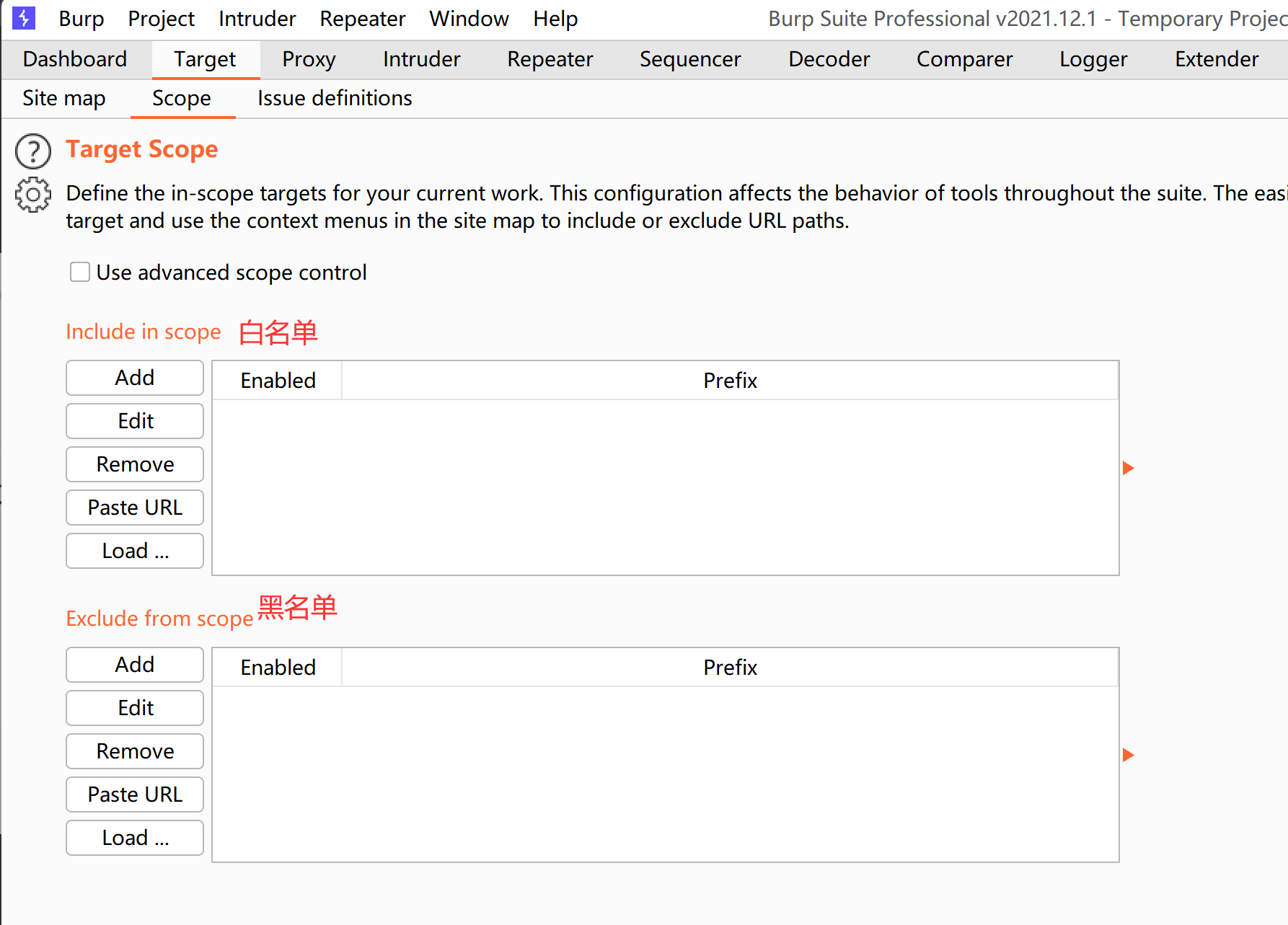 限定域的范围(只拦截/不拦截)
