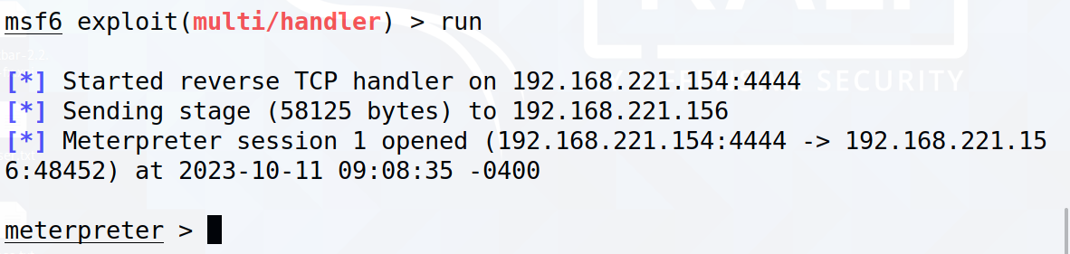 使用msf创建反弹链接(*反弹连接是目标机主动向kali建立连接,所以一定要填kali的IP地址)