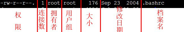 接下来的字符中,以三个为一组,均为”rwx“的三个参数的组合。分别是r:可读;w:可写;x:可执行。注意,这三个权限的位置不会改变,如果没有权限,就是:”-“。(-rw-------只有所有者才有读和写的权限,-rw-r--r--只有所有者才有读和写的权限,组群和其他人只有读的权限,-rwx------只有所有者才有读,写,执行的权限)