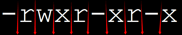 第一组为拥有者的权限,第二组为同群组的权限,第三组为其他非本群组的权限。