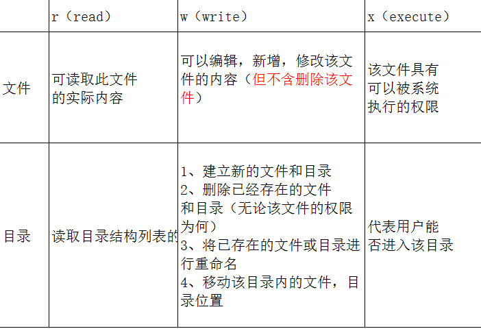 在linux中,任何一个档案都具有、所有者、用户组、其他用户这三种身份的个别权限。